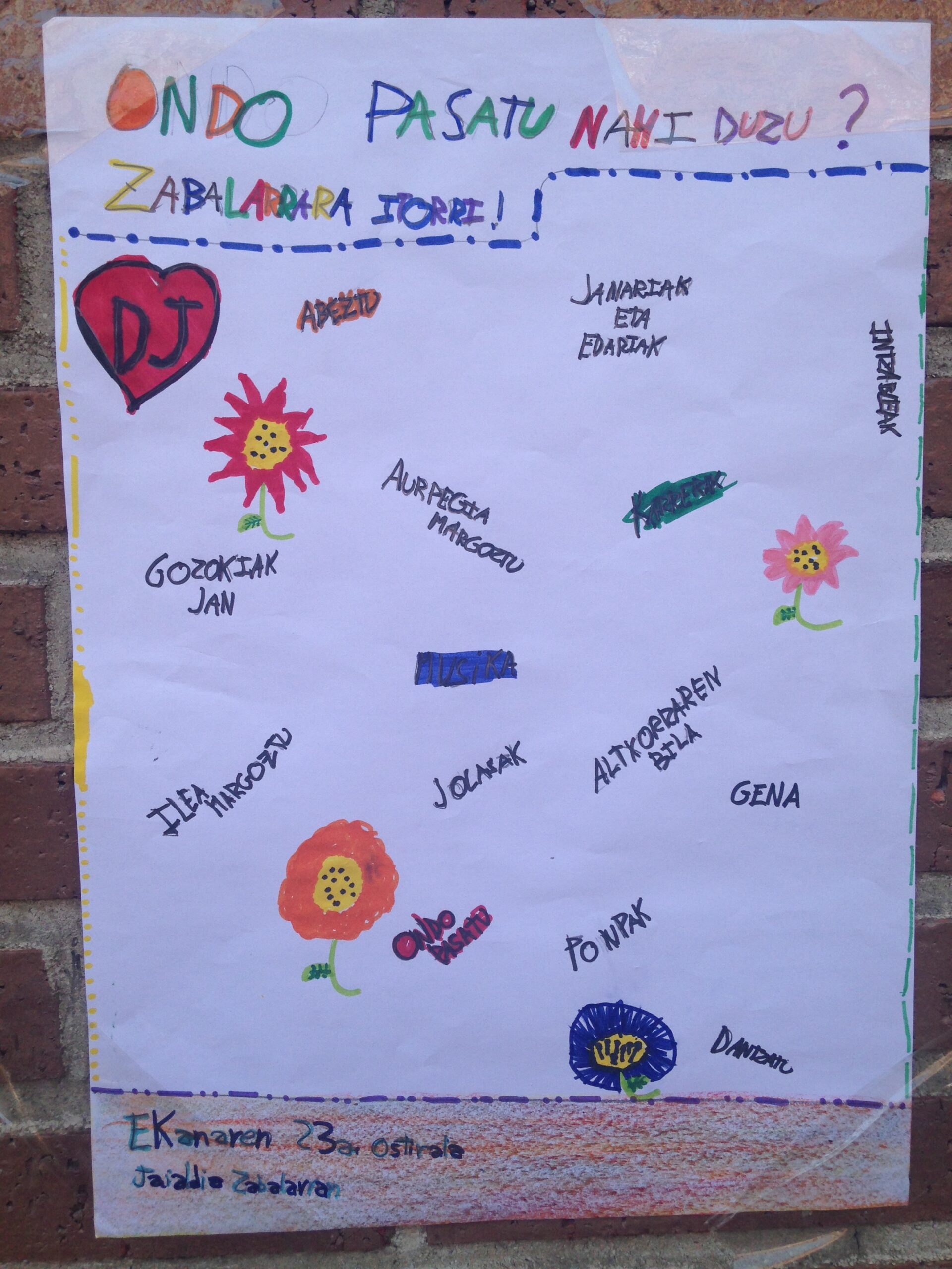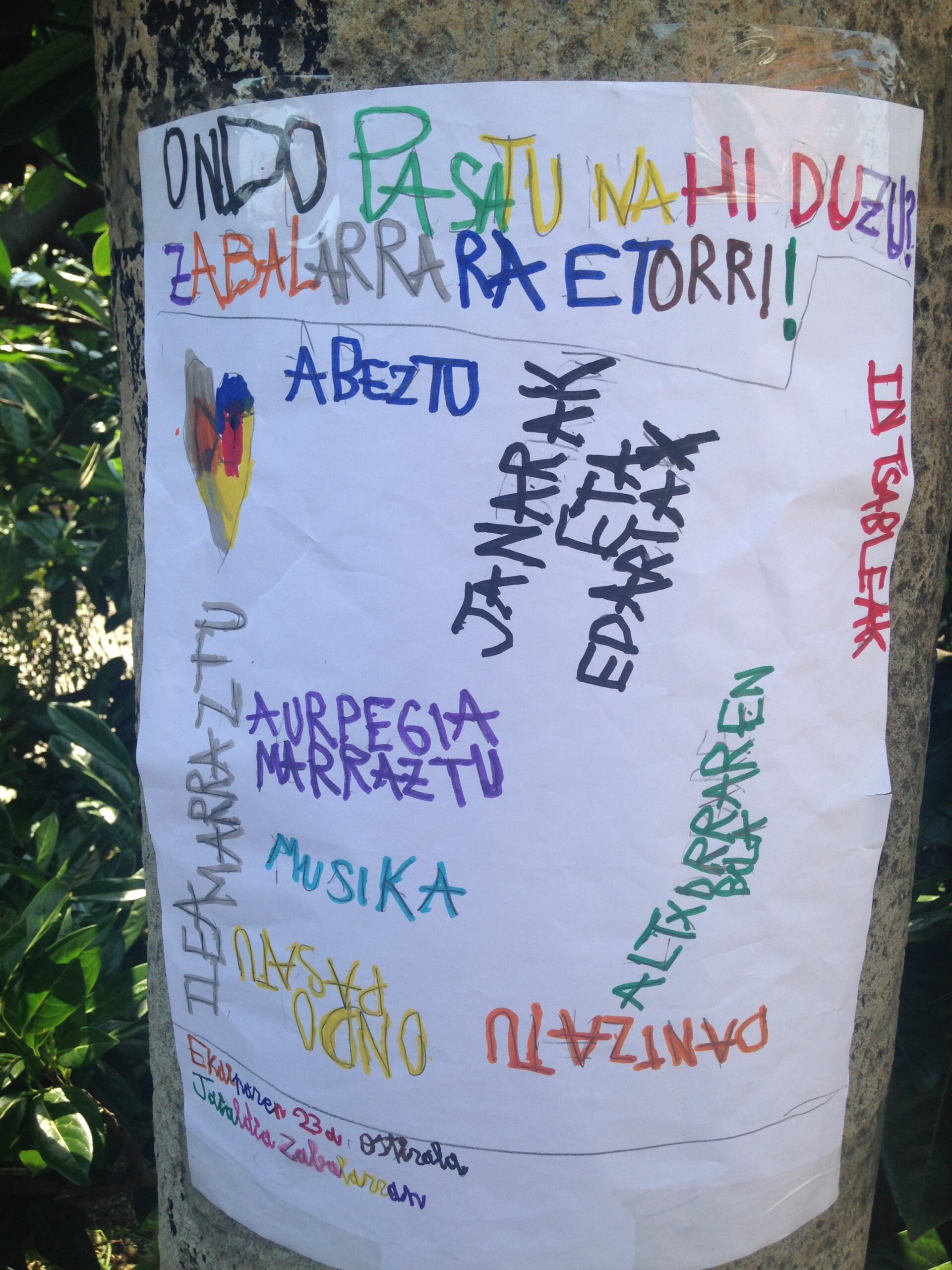 Kalean eta parkeetan euskararen erabilera handitzea du helburu. Horretarako, dinamizatzaileen laguntzaz jolas saioak burutuko dira Durangoko leku ezberdinetan.