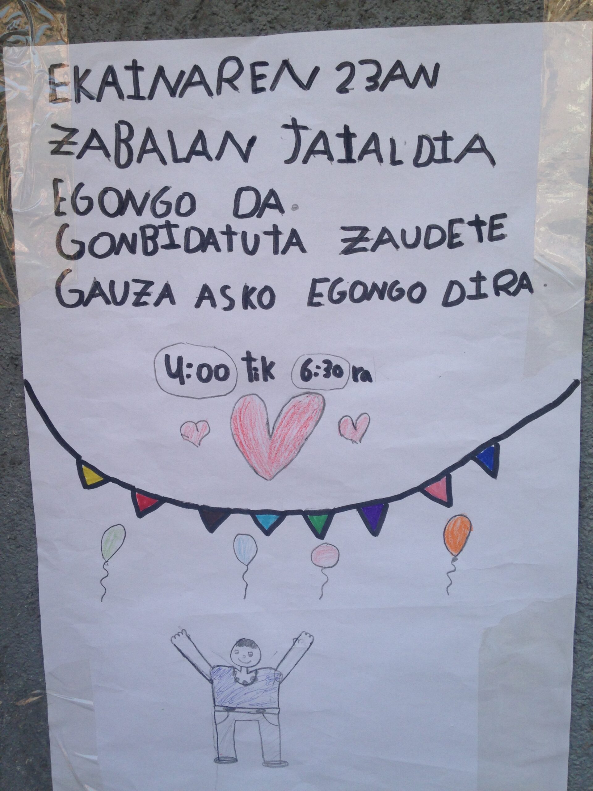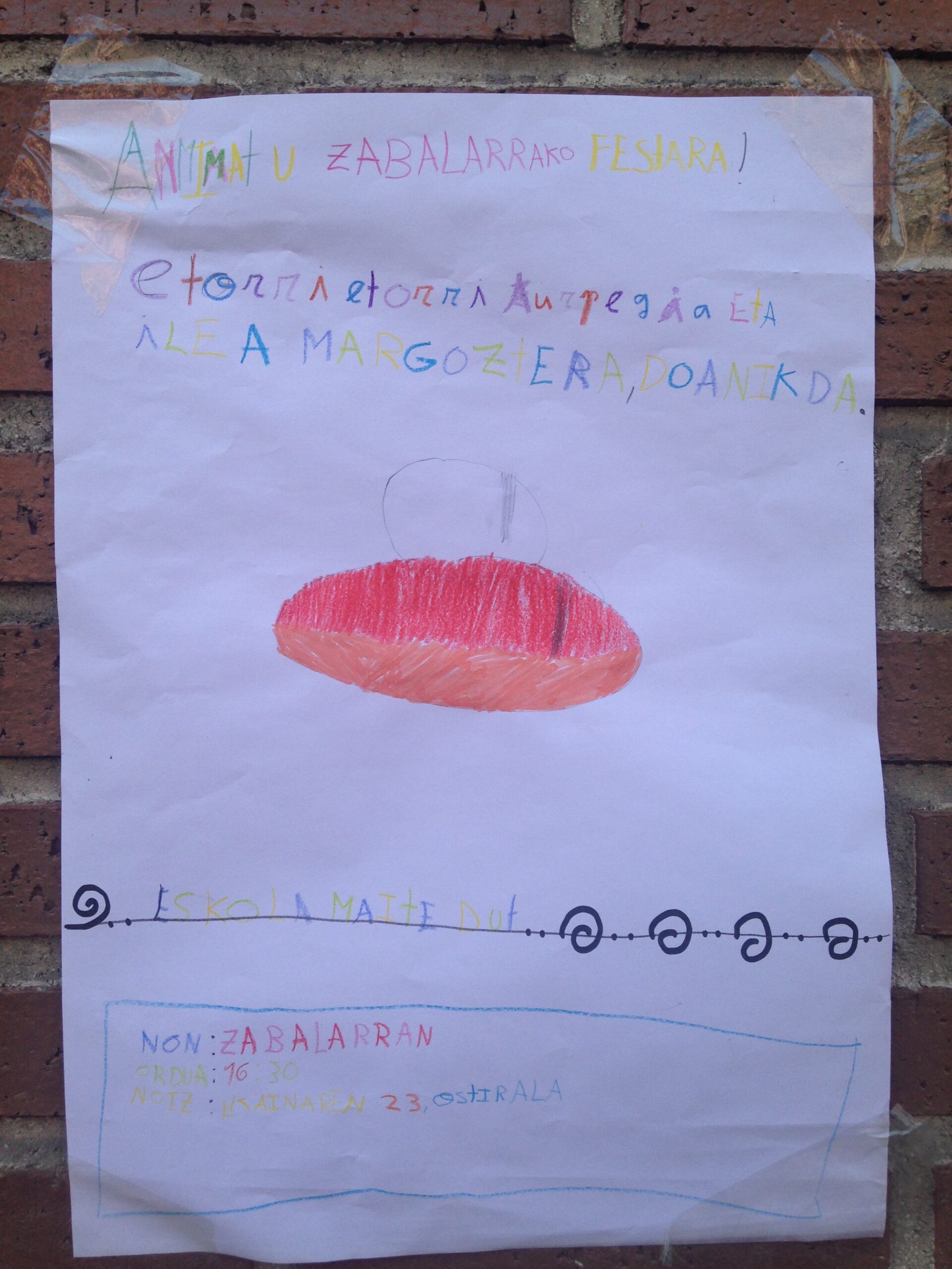 - Eskolatik pasatu iragarki taulan jarri den egutegia eta ordutegia errespetatuz.